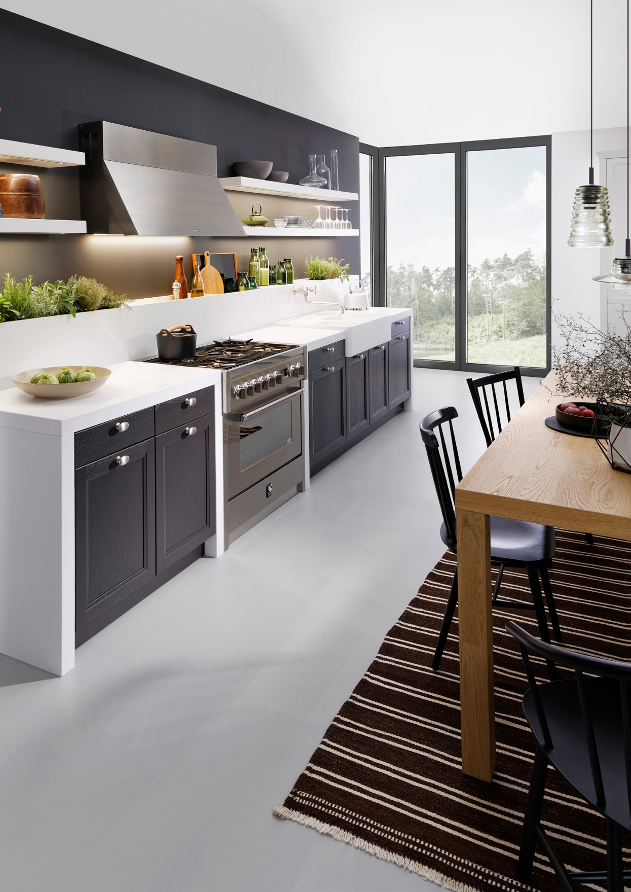 This fabulous Handless Kitchen in a bold shade of grey inspires and stimulates the senses. The contrasting colours encourage one to indulge in mystery and drama.