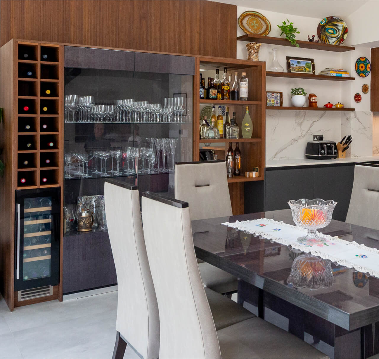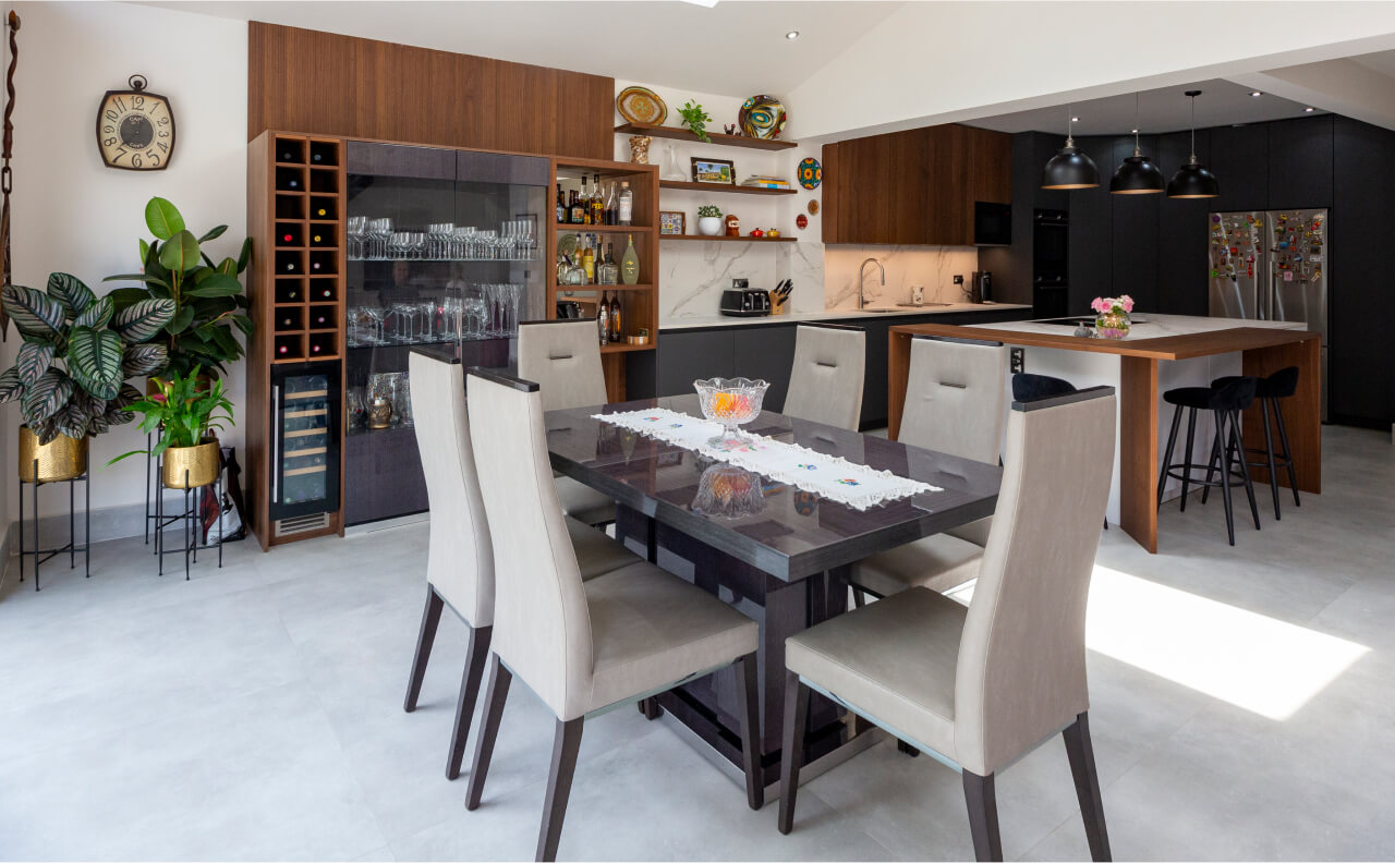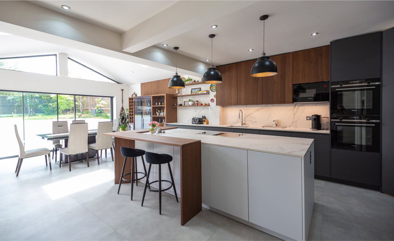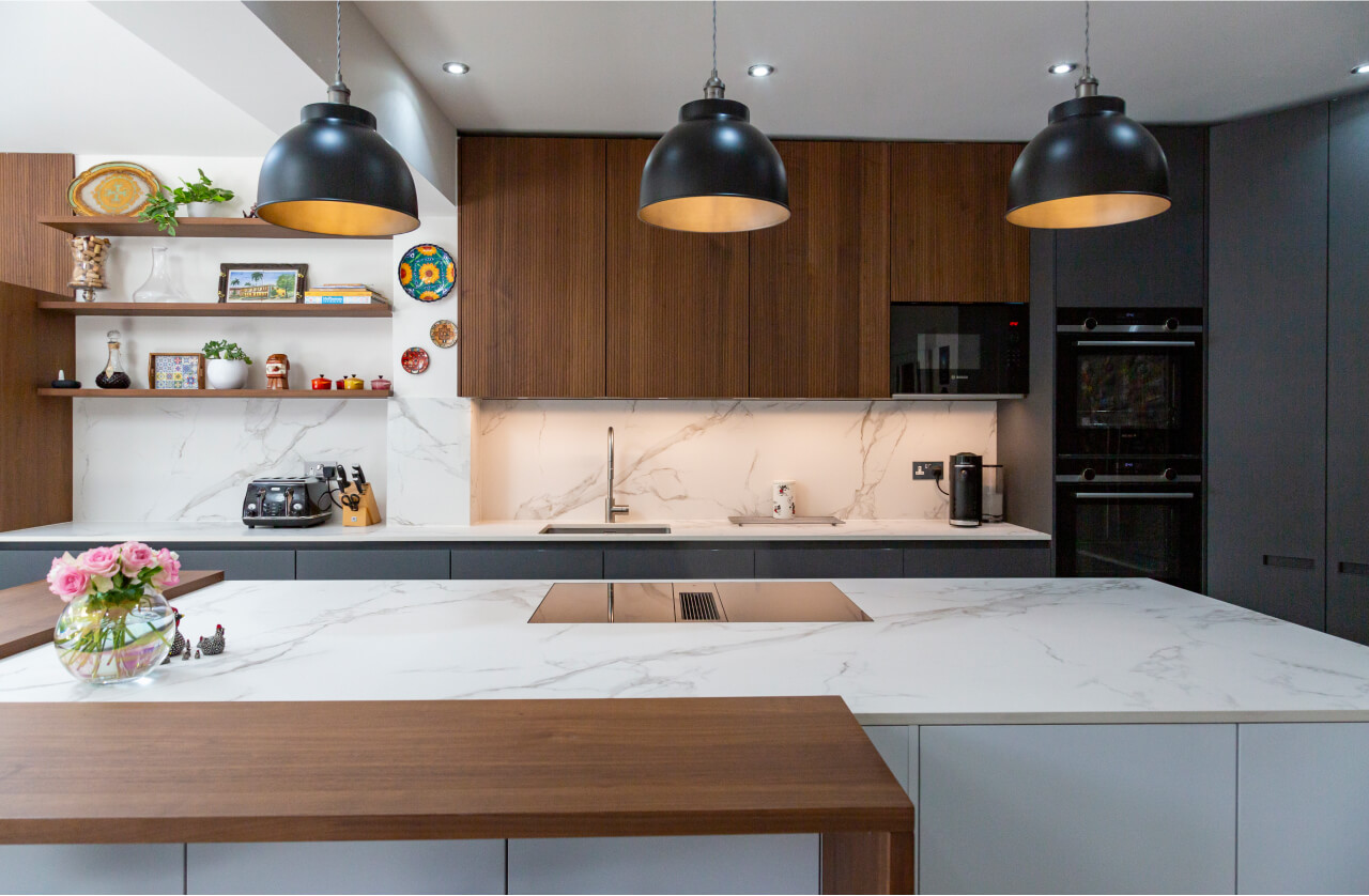 The result is a kitchen that combines striking aesthetics with everyday practicality, designed for both contemporary living and stylish entertaining.